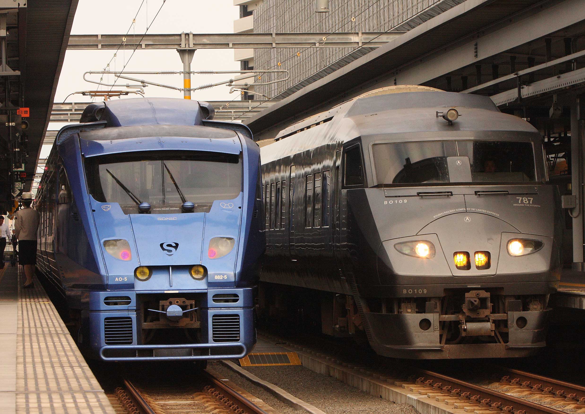 日豊本線大分駅 [左]883系特急「ソニック」+[右]787系特急「にちりん」 2014年9月