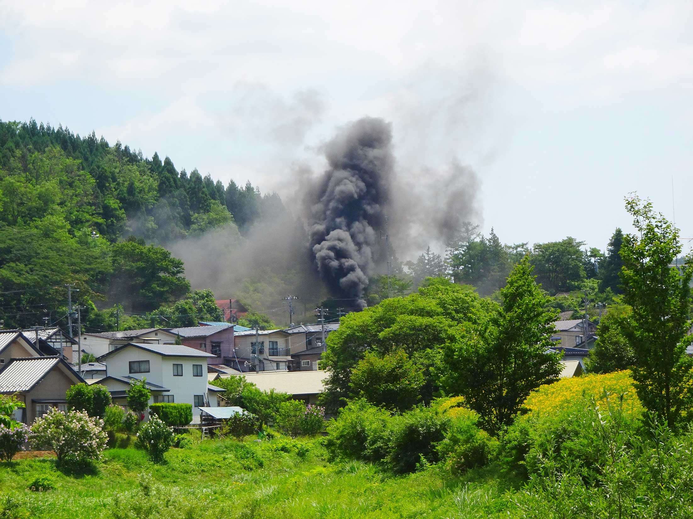*何人か鉄ちゃんが周辺にいた。私は<写真4>のキハ110系をねらっていたが、鉄ちゃんたちは私とは逆の方向にレンズを向けていた。何か臨時のイベント列車でも来るのかなと思っていたら、この「SL銀河」が後ろから通過。いちおう去って行くところを1枚カシャ。でも、私は現役の列車にしか興味は無いので、このようなイベント列車はパス。それにしても、<写真6>で次の駅に止まっている中、蒸気機関車の煙がもくもくと天に舞い上がりすごかった。まるで爆弾でも落ちたかのようだった。うーむ。